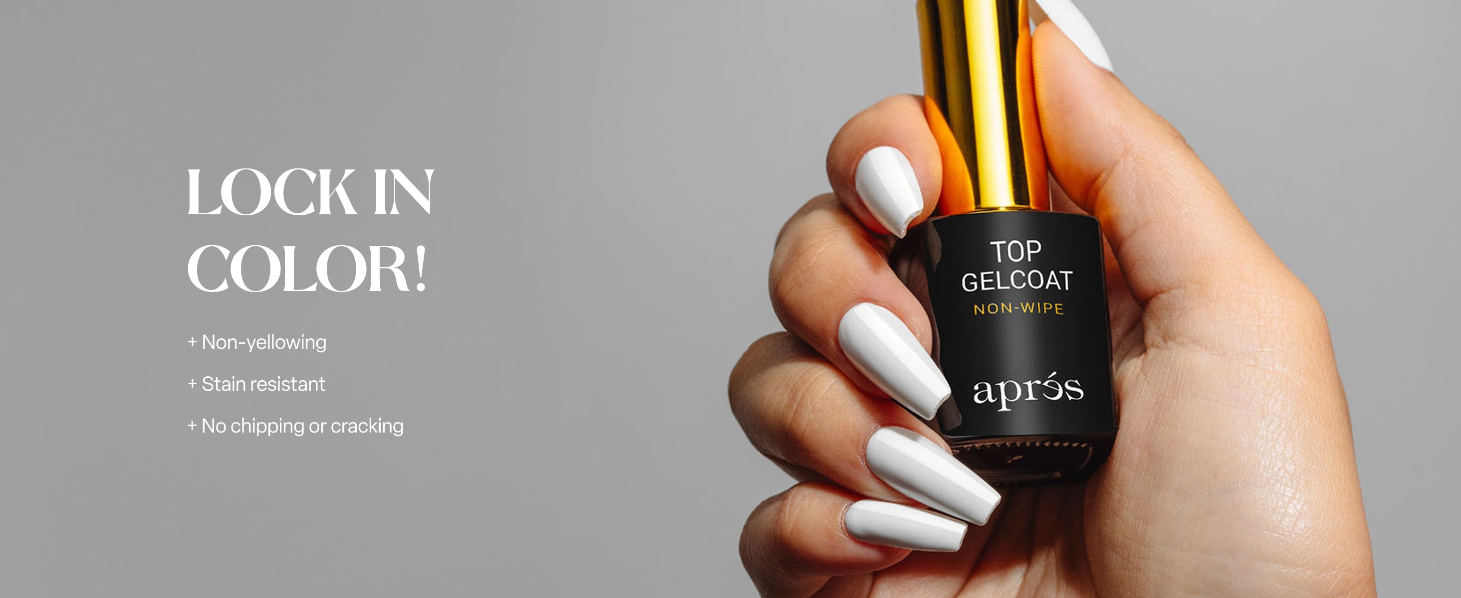 Our newly reformulated Non-Wipe Glossy Top Gelcoat delivers the same ultra-glossy, chip-resistant finish Aprés is known for—now in a HEMA & TPO-free formula. Designed for salon efficiency and client safety, this topcoat offers smooth self-leveling application, a non-wipe finish, and long-lasting shine that holds up to real life.