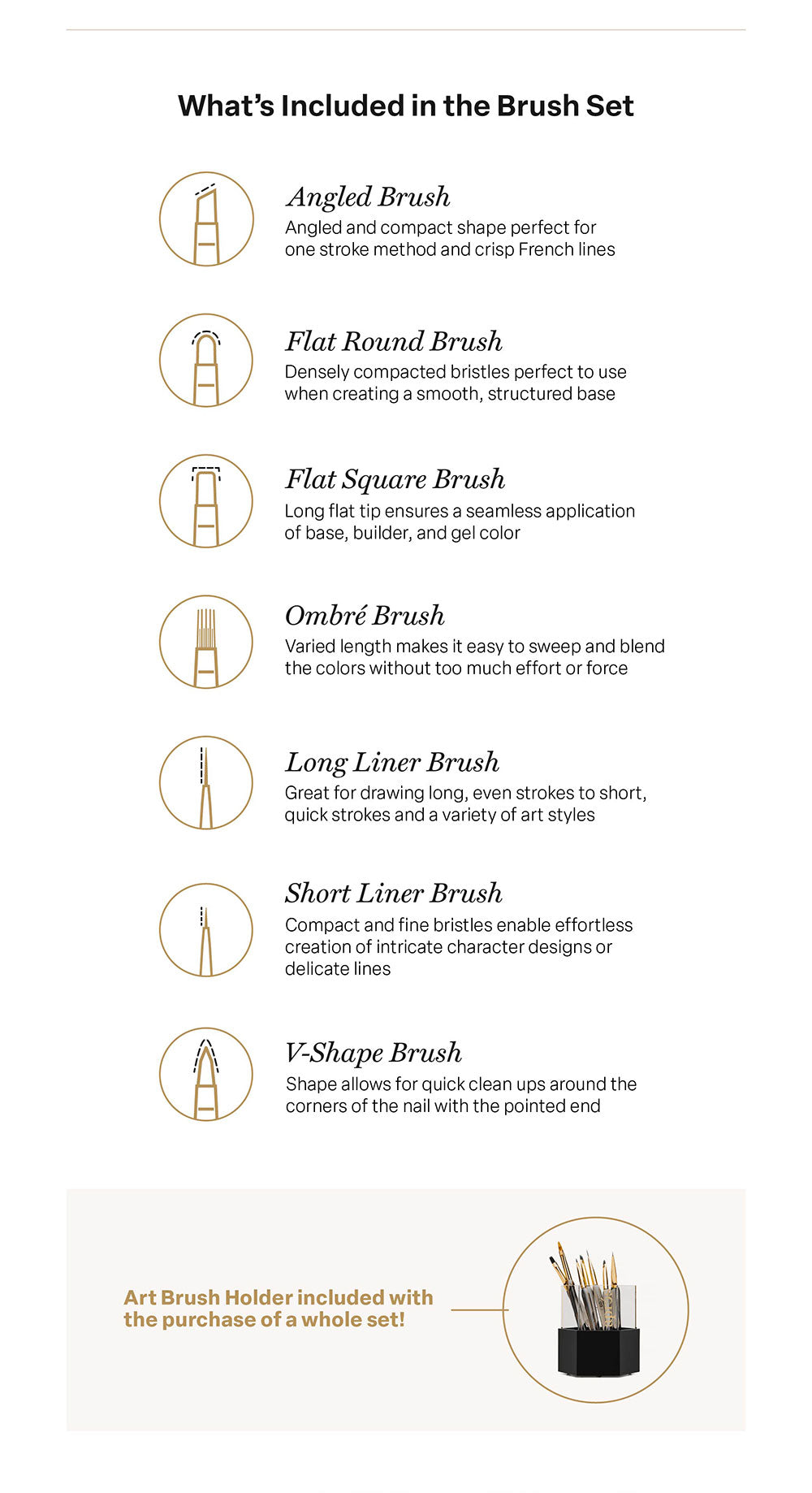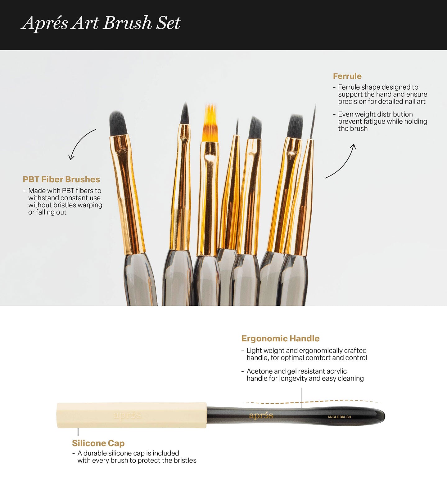 Aprés Art Brush Set - 7pcs w/ Holder