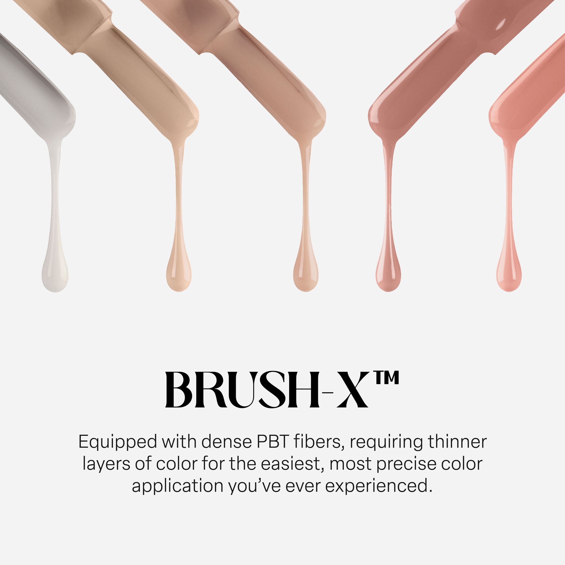 - Brush-X made of PBT fibers creates a denser, Japanese nail art-like brush for maximized control
