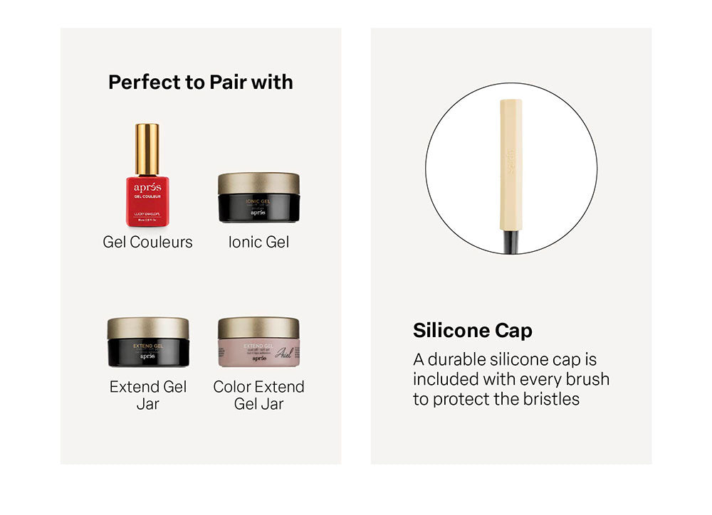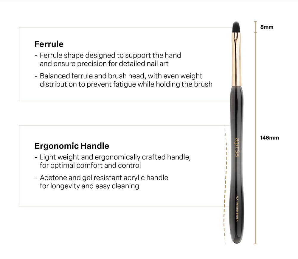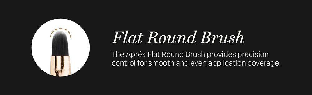With its densely compacted bristles, the Aprés Flat Round Brush provides precision control for smooth and even application coverage. It is the perfect brush to use when creating a smooth structured base. The Flat Round Brush also provides excellent coverage when applying gel color. Manufactured with PBT fibers, this brush will be able to withstand constant and regular use without warping or falling out.