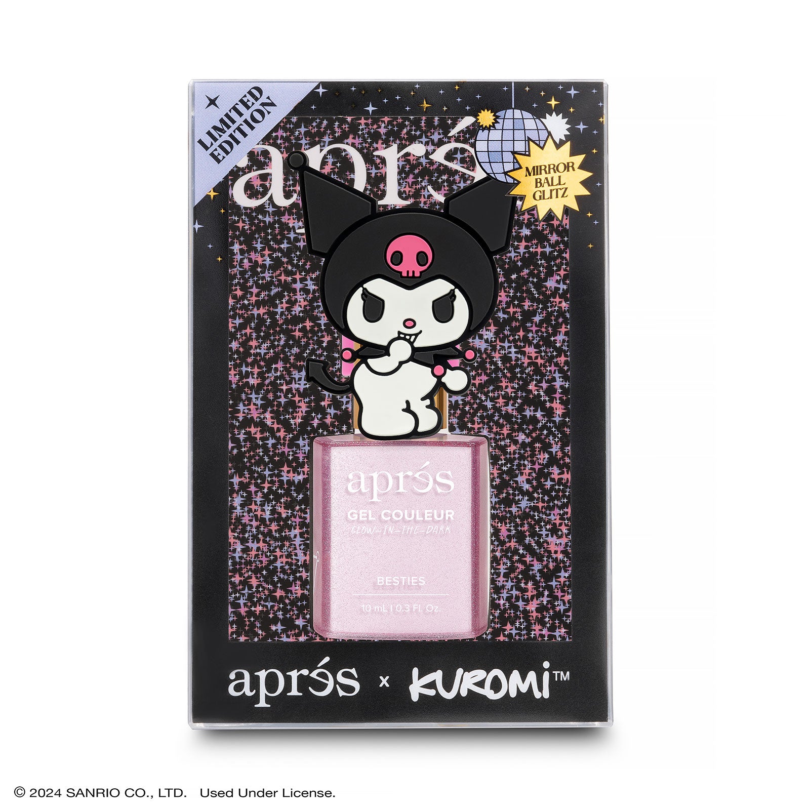 • Apply a layer of ultra reflective Kuromi™ Flash Glitter Gel Couleur and cure in an LED light for 30s. Finish with Aprés Non-Wipe Top Gelcoat and you’re ready to shine bright all day with your besties by your side.