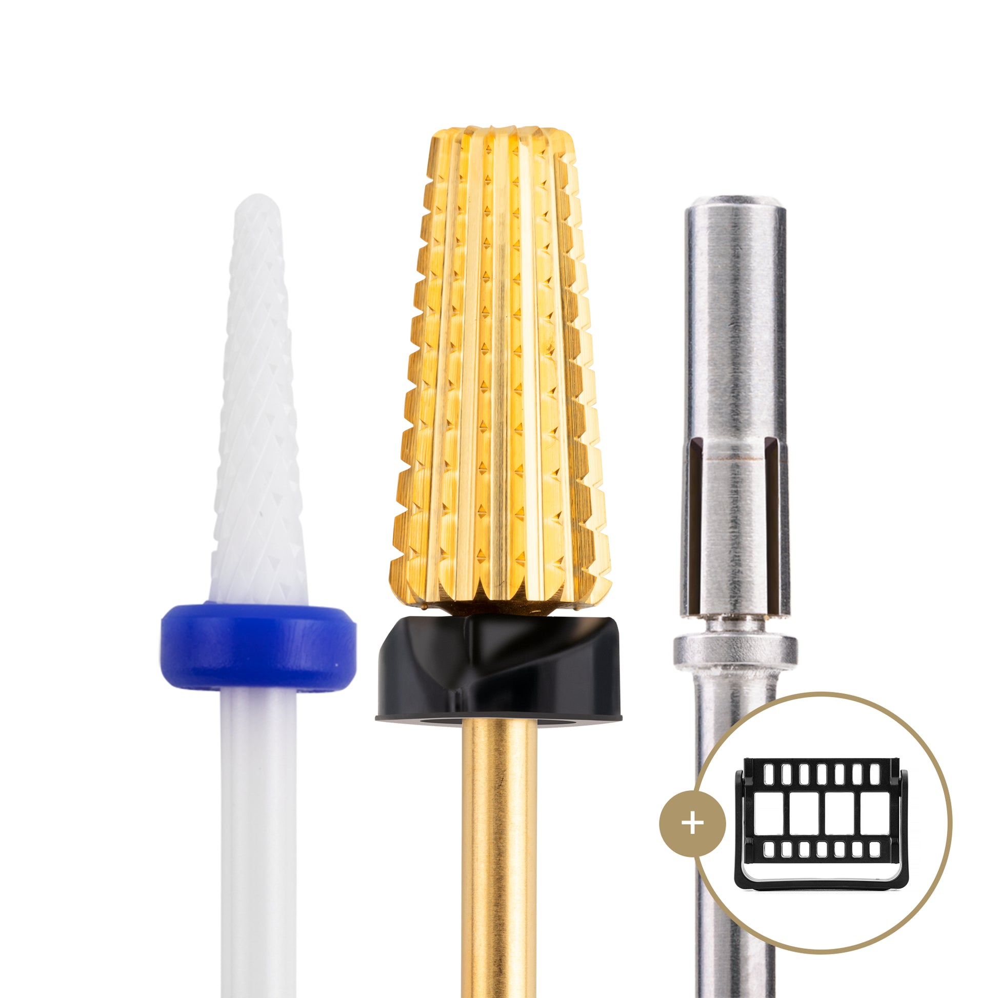 The ultimate bit starter set for every nail tech. This 4-piece bundle streamlines your entire e-filing process—from prep to refinement and everything in between. Whether you're working on Gel-X® Tips, overlays, or natural nails, this set has you covered for pro-level performance and everyday convenience.
