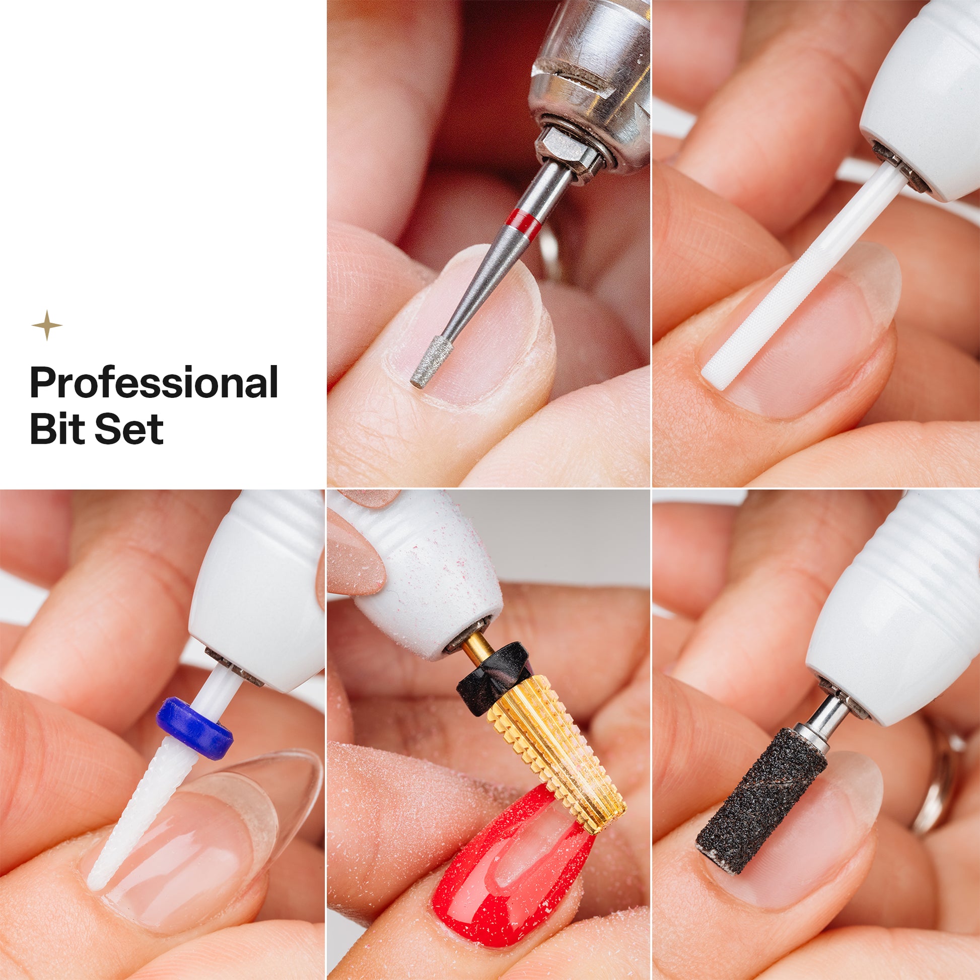 The ultimate bit toolkit for serious nail techs. This 6-piece bundle takes your e-filing to the next level—from advanced prep to precision shaping and flawless refinement. Whether you're working on Gel-X® Tips, acrylic, or natural nails, this set delivers the power, precision, and versatility pros need in every service.