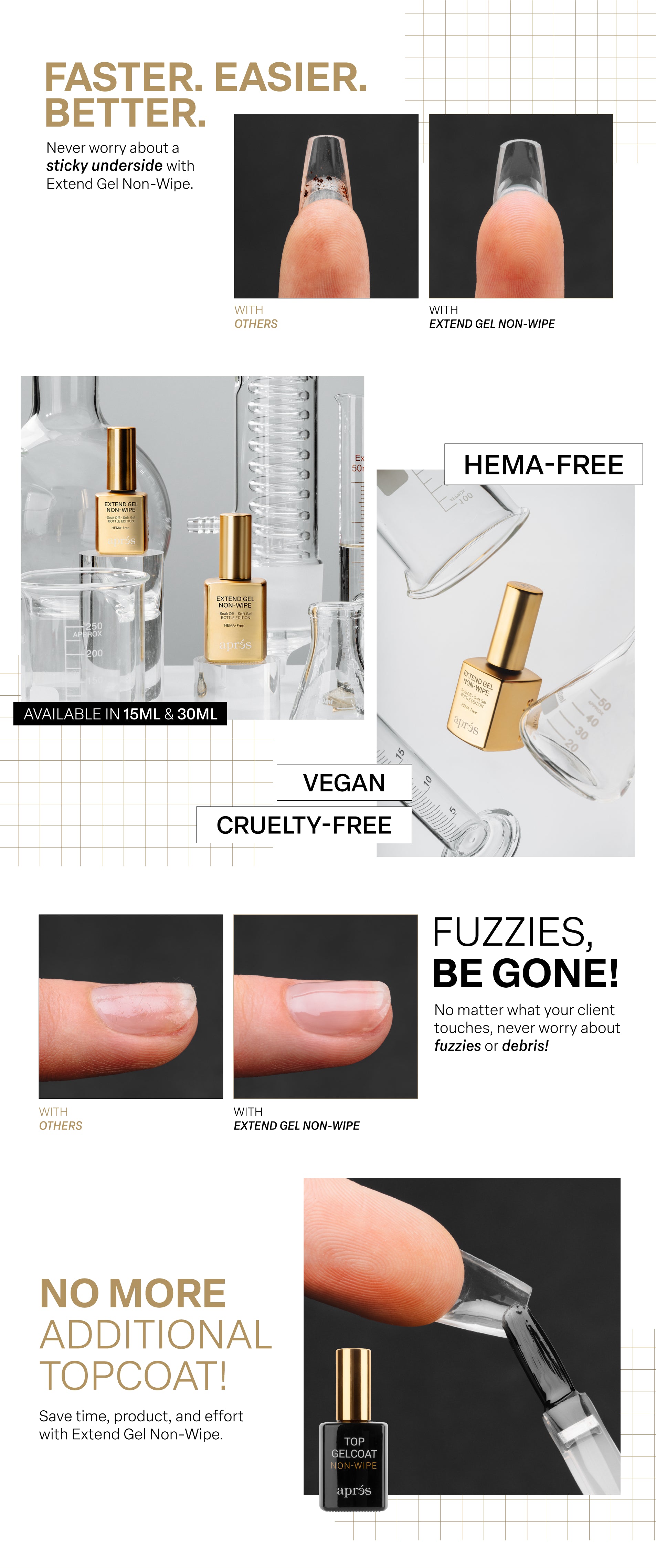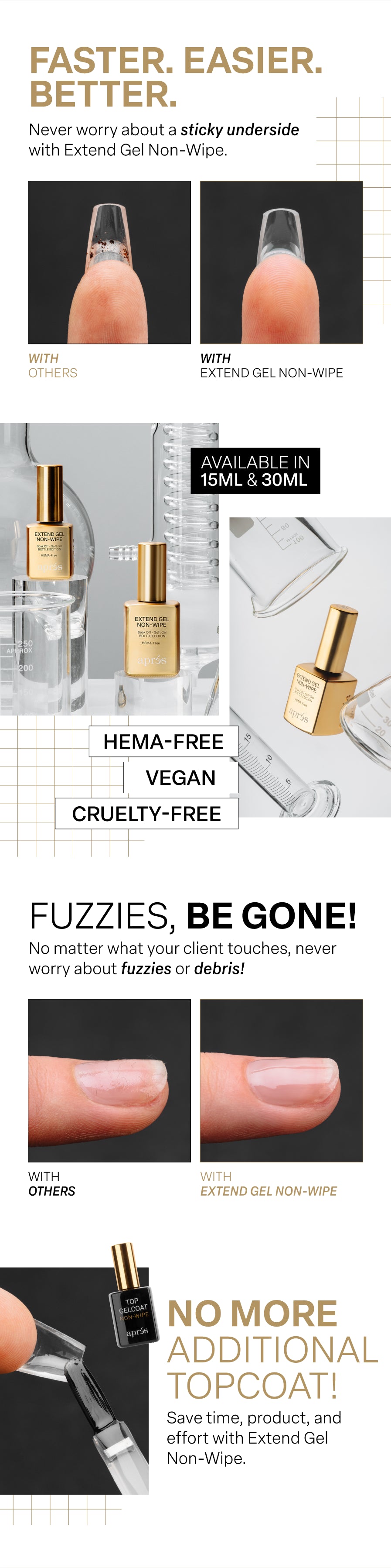 The Next Evolution of Gel-X®. Extend Gel Non-Wipe takes the legendary Aprés hold you know and love and enhances it with a sleek, dust-free finish. This HEMA-Free, TPO-Free, TMPTA-Free formula bonds Gel-X® Tips to natural nails with the perfect balance of strength and flexibility—keeping your sets flawless and comfortable for weeks.