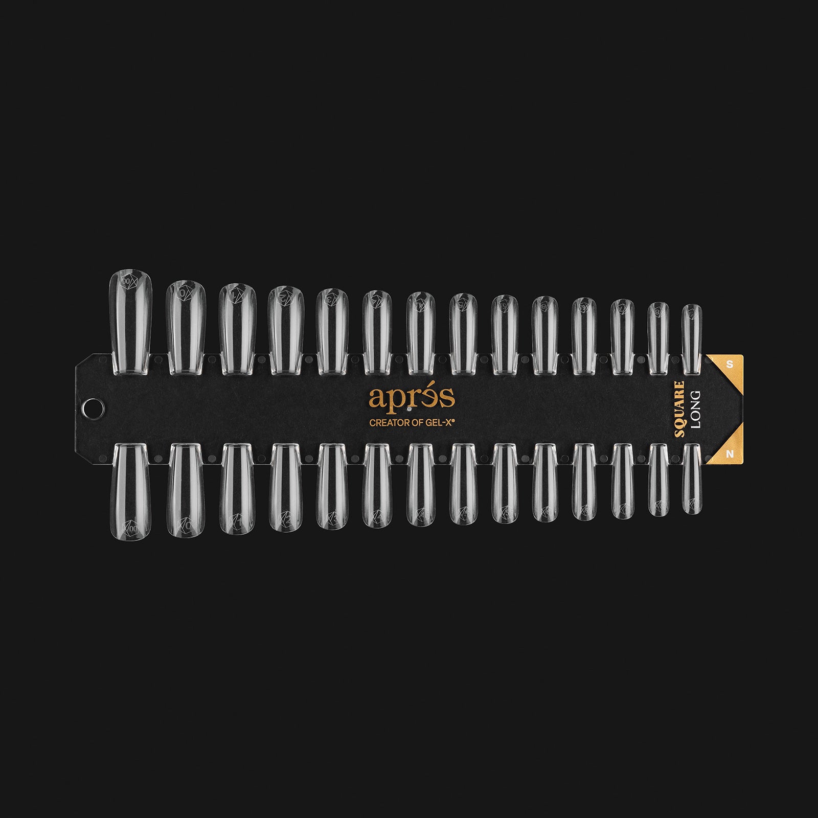 The Gel-X® Tip Swatches assists in discovering and identifying the perfect Gel-X® Tip for your client. Featuring a wide variety of styles, lengths and shapes, giving you an advantage to improve the nail application process with speed and ease. Crafted from sturdy acrylic, these swatches resist bending and breaking, ensuring long-term reliability. Each swatch is clearly labeled with the tip shape, length, and size, making it simple to find the perfect fit and style.