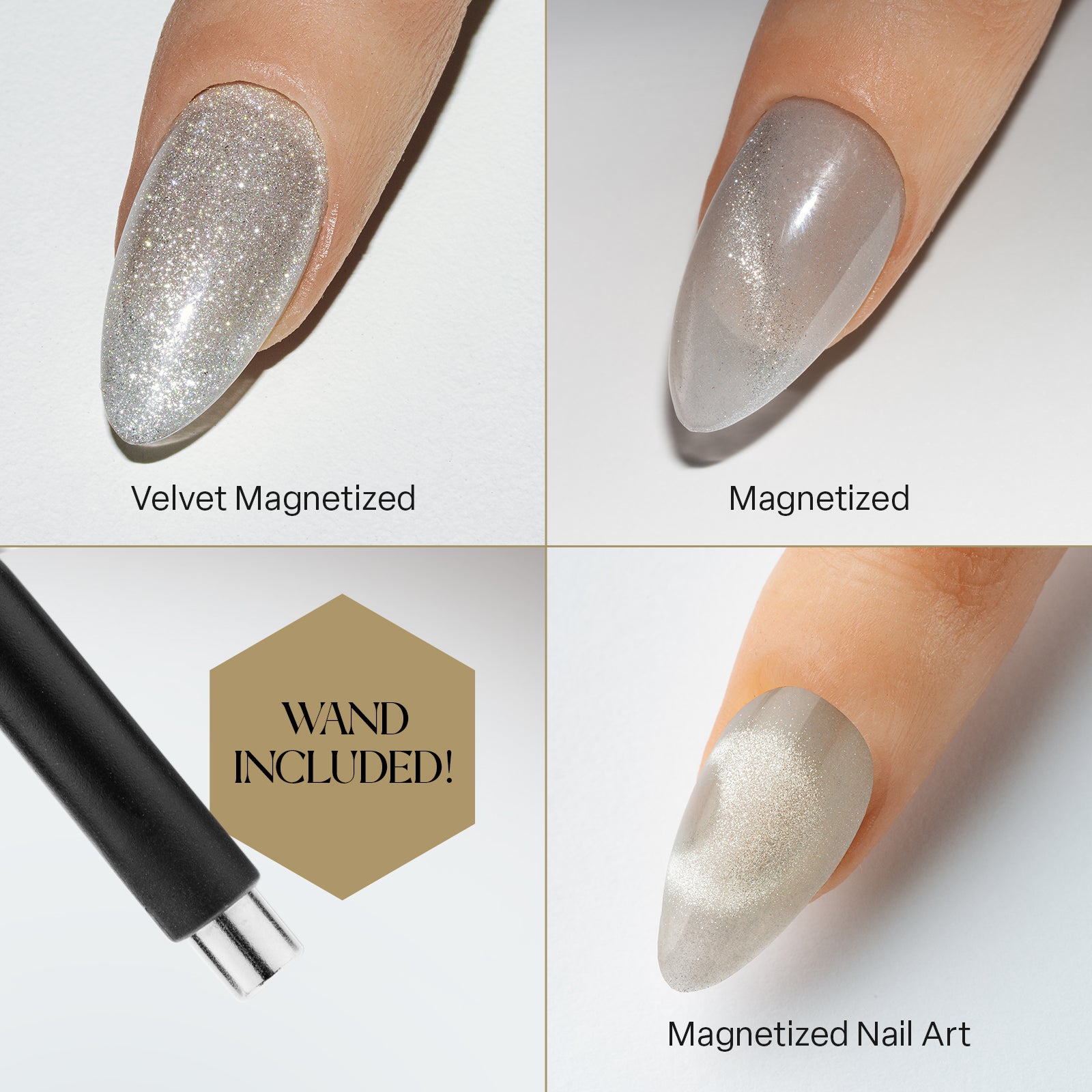 10 Velvet Cat Eye Shades: Every Velvet Cat Eye shade, from an icy bluish white to a luxuriously rich green, leaves a regal and glowing velveteen finish with super-fine magnetic particles suspended in a sheer color gel base to create a completely custom, one-of-a-kind look. Includes Magnet Wand.