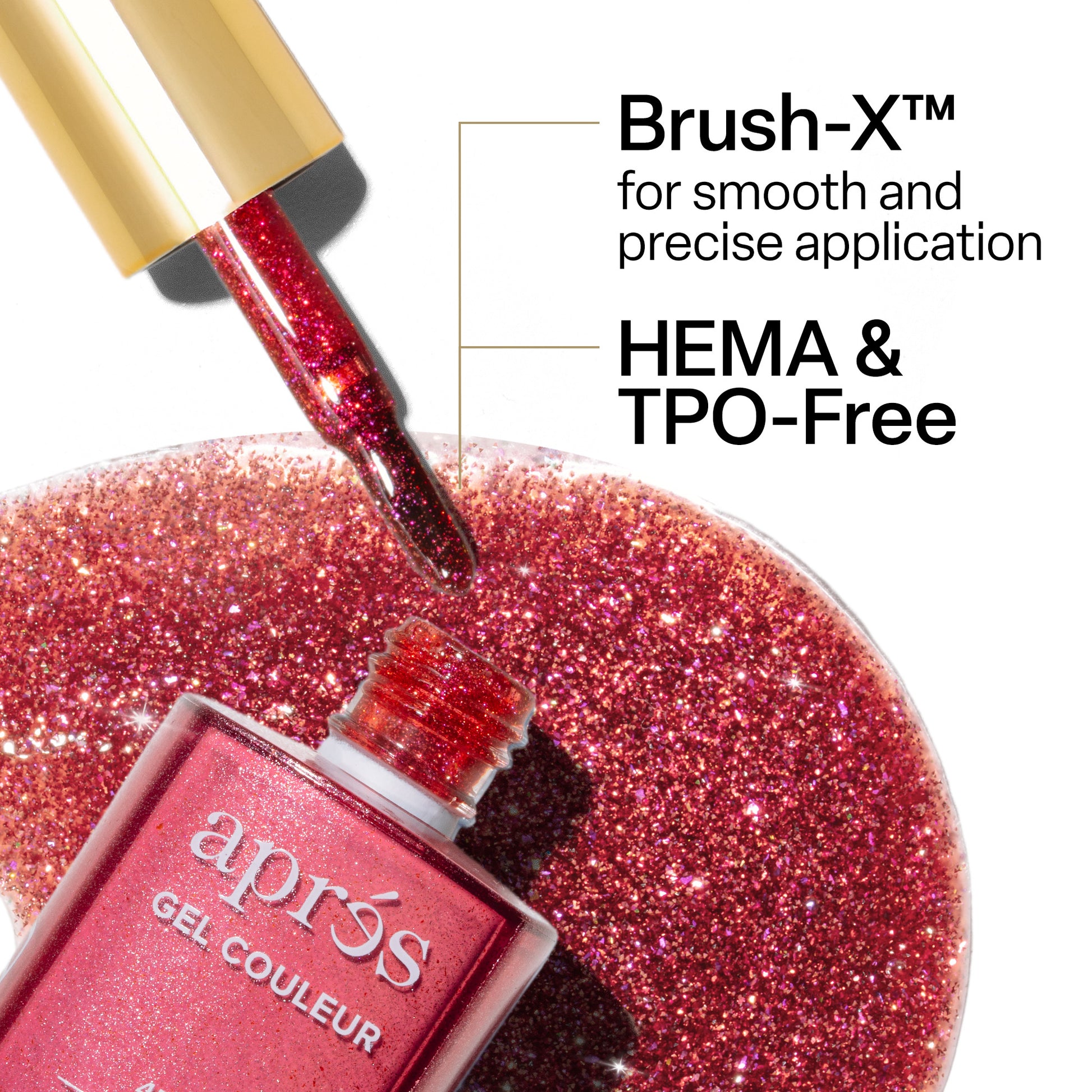 Unleash your inner sparkle with our limited edition Hello Kitty® Flash Glitter Gel Couleur featuring high definition, ultra reflective glitter. Each magical bottle of Hello Kitty® Flash Glitter Gel Couleur comes with Aprés Nail’s innovative Brush-X™, making application fun and easy! The Hello Kitty® Flash Glitter Gel Couleur is HEMA-free, vegan and cruelty-free and safe for natural nails with a base gelcoat and great with Gel-X® Tips.