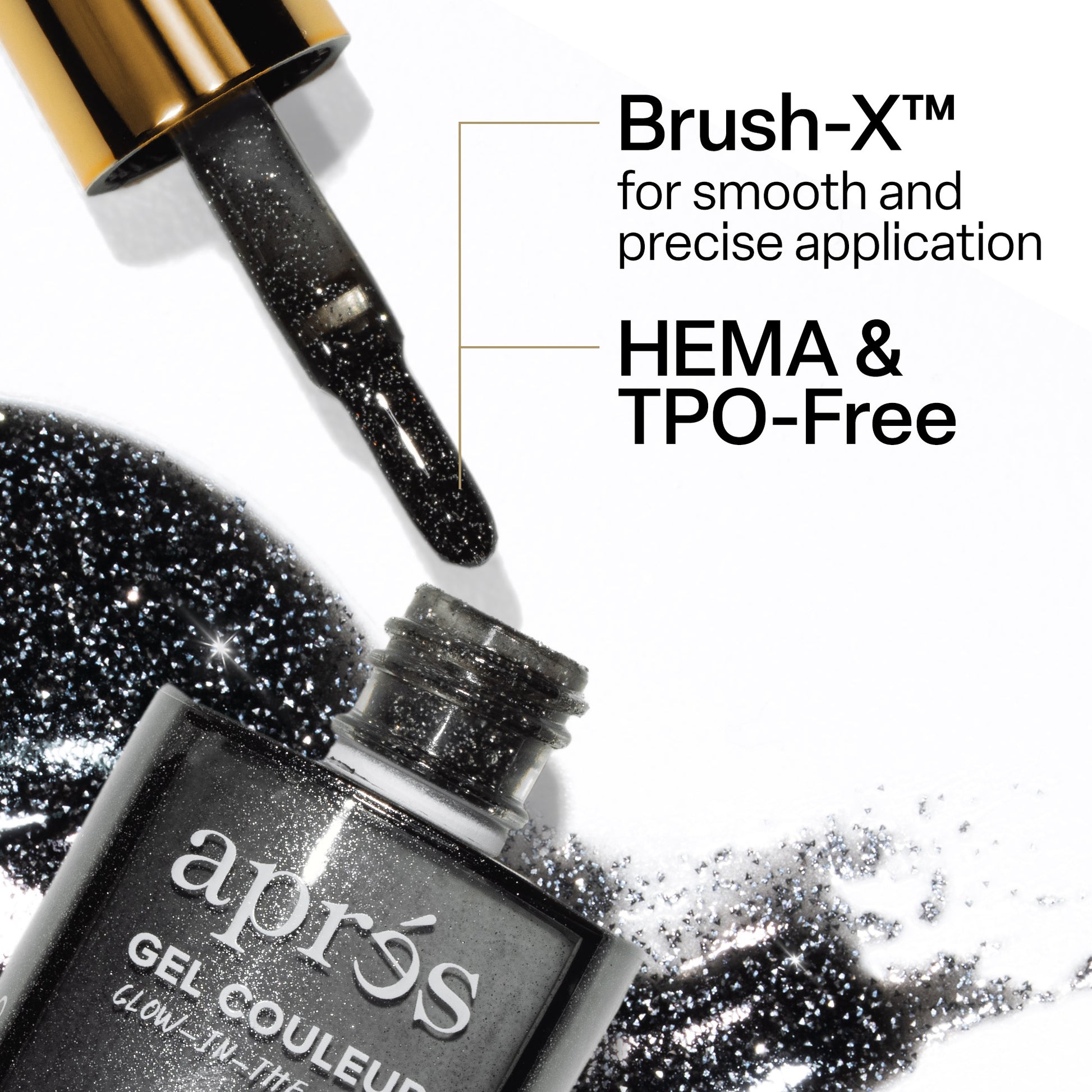 - Apply a layer of ultra reflective Kuromi™ Flash Glitter Gel Couleur and cure in an LED light for 30s. Finish with Aprés Non-Wipe Top Gelcoat and you’re ready to shine bright all day with your besties by your side.