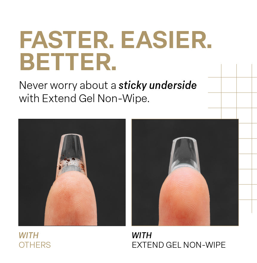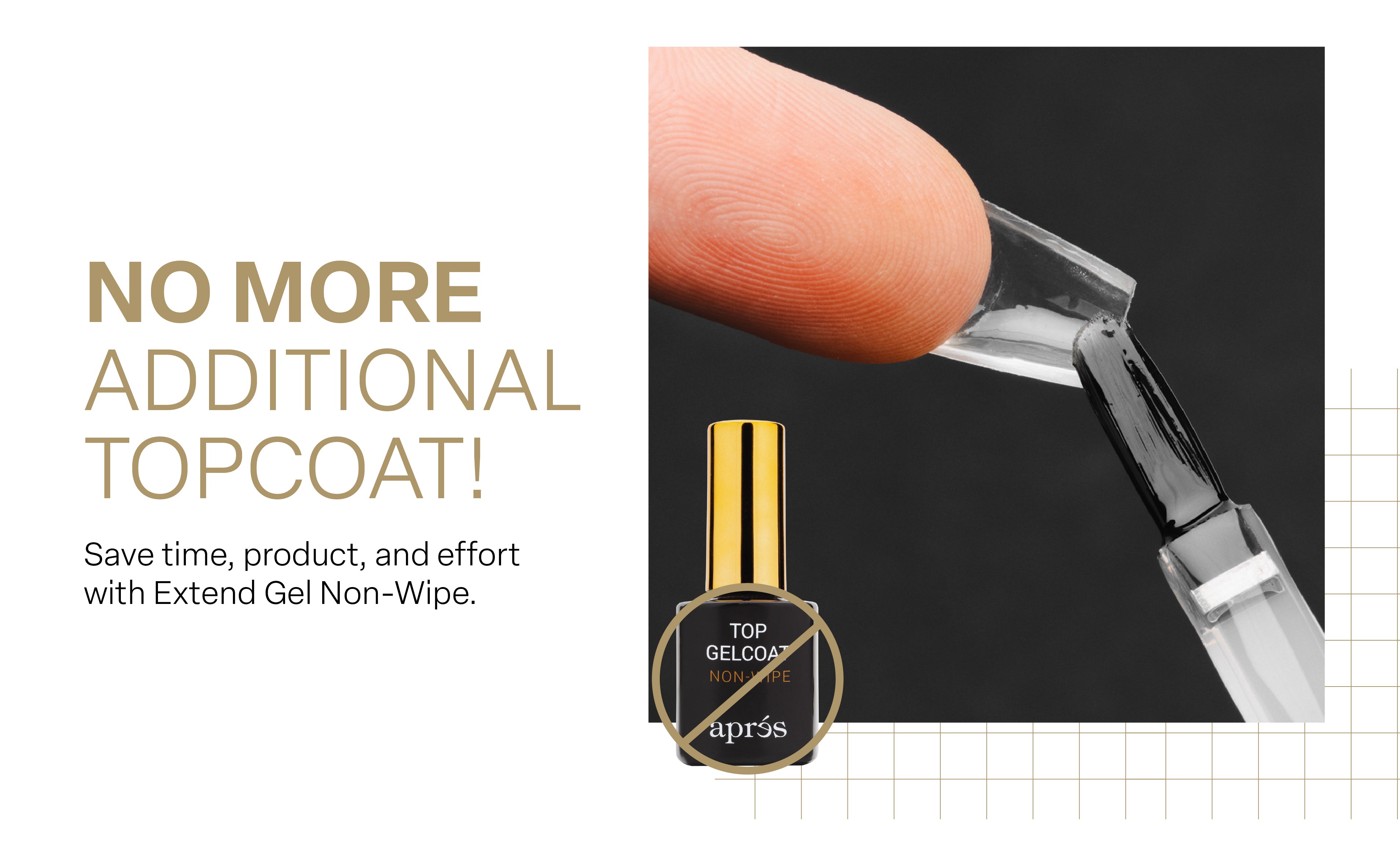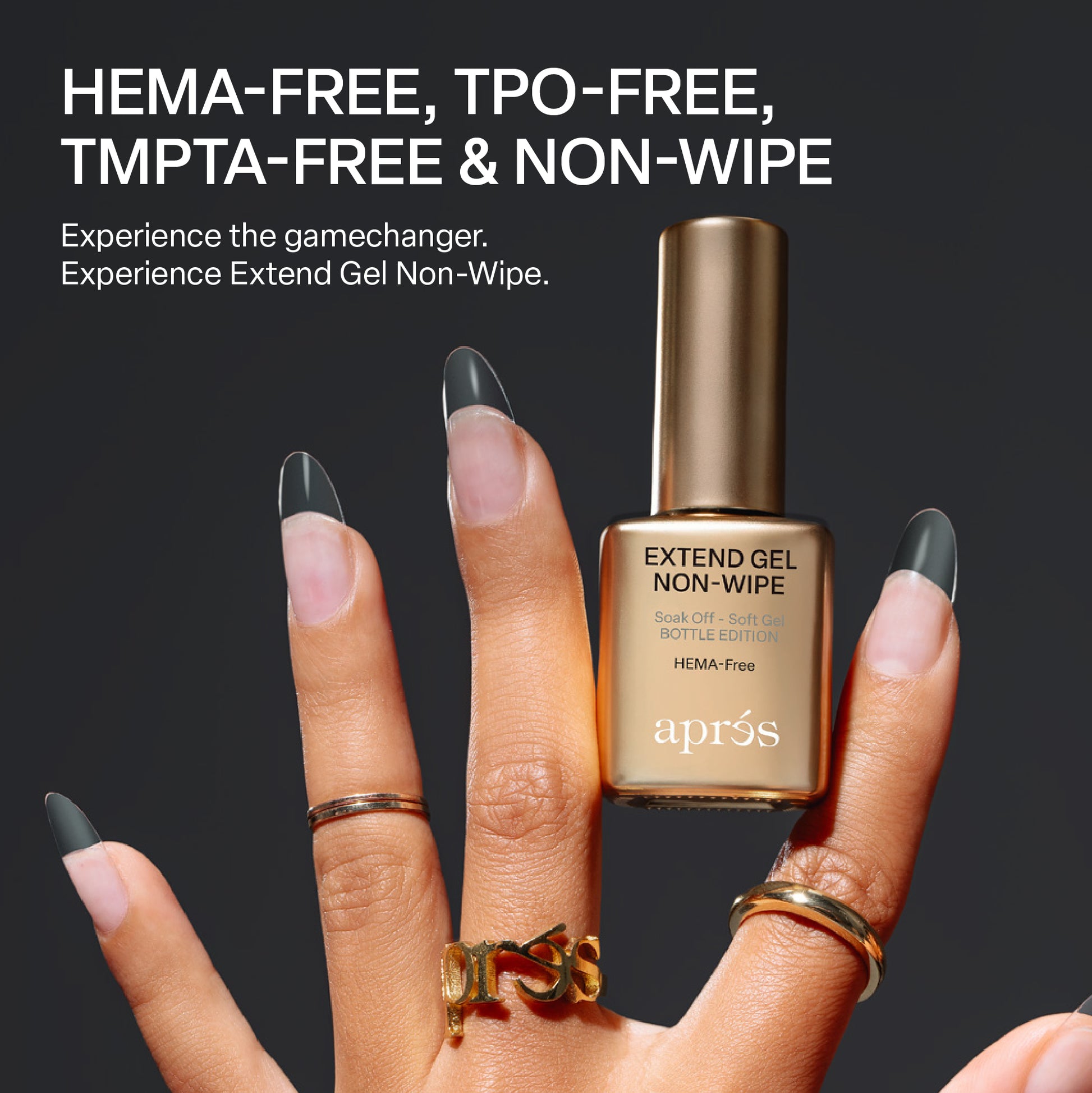 The Next Evolution of Gel-X®. Extend Gel Non-Wipe takes the legendary Aprés hold you know and love and enhances it with a sleek, dust-free finish. This HEMA-Free, TPO-Free, TMPTA-Free formula bonds Gel-X® Tips to natural nails with the perfect balance of strength and flexibility—keeping your sets flawless and comfortable for weeks.
