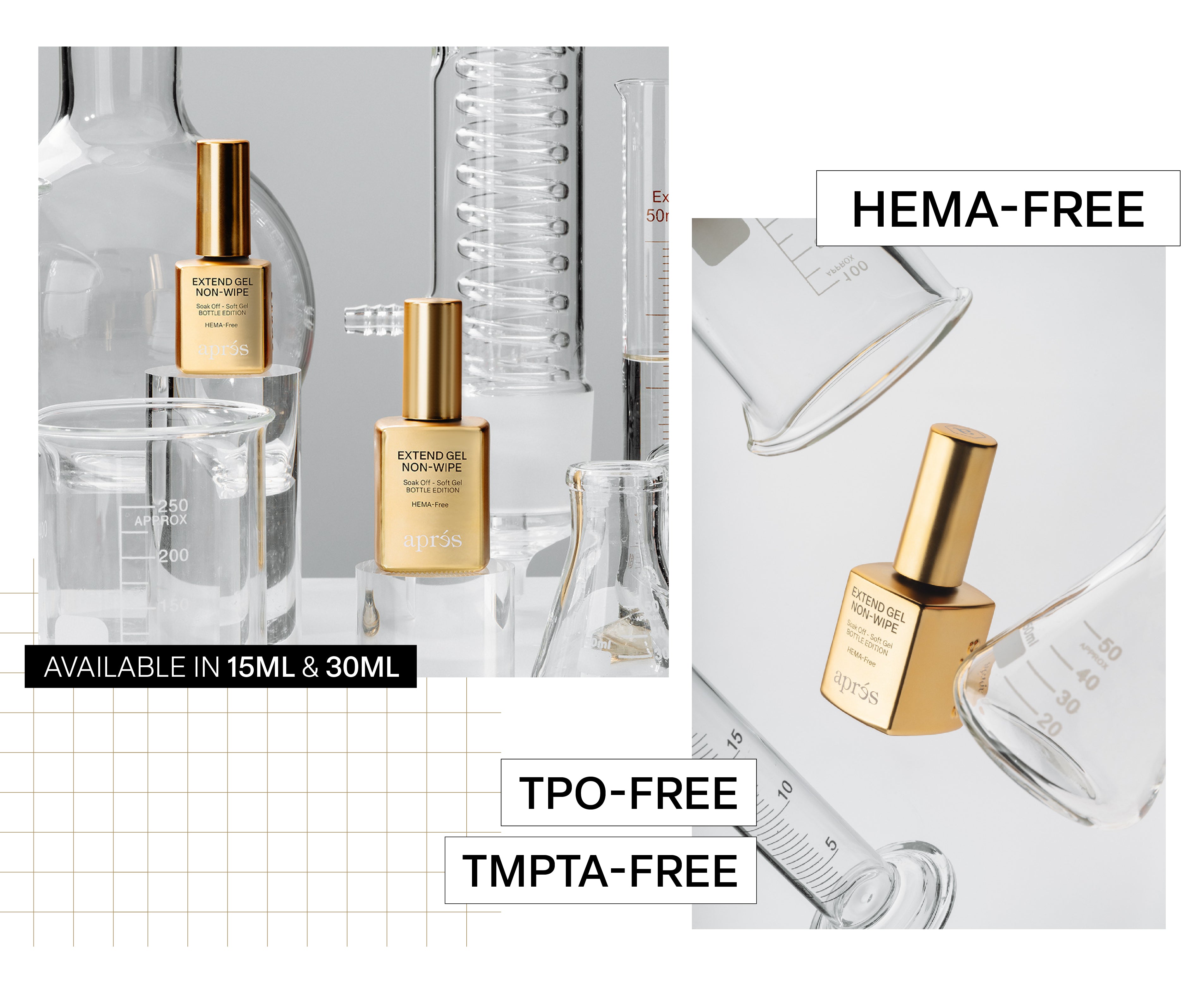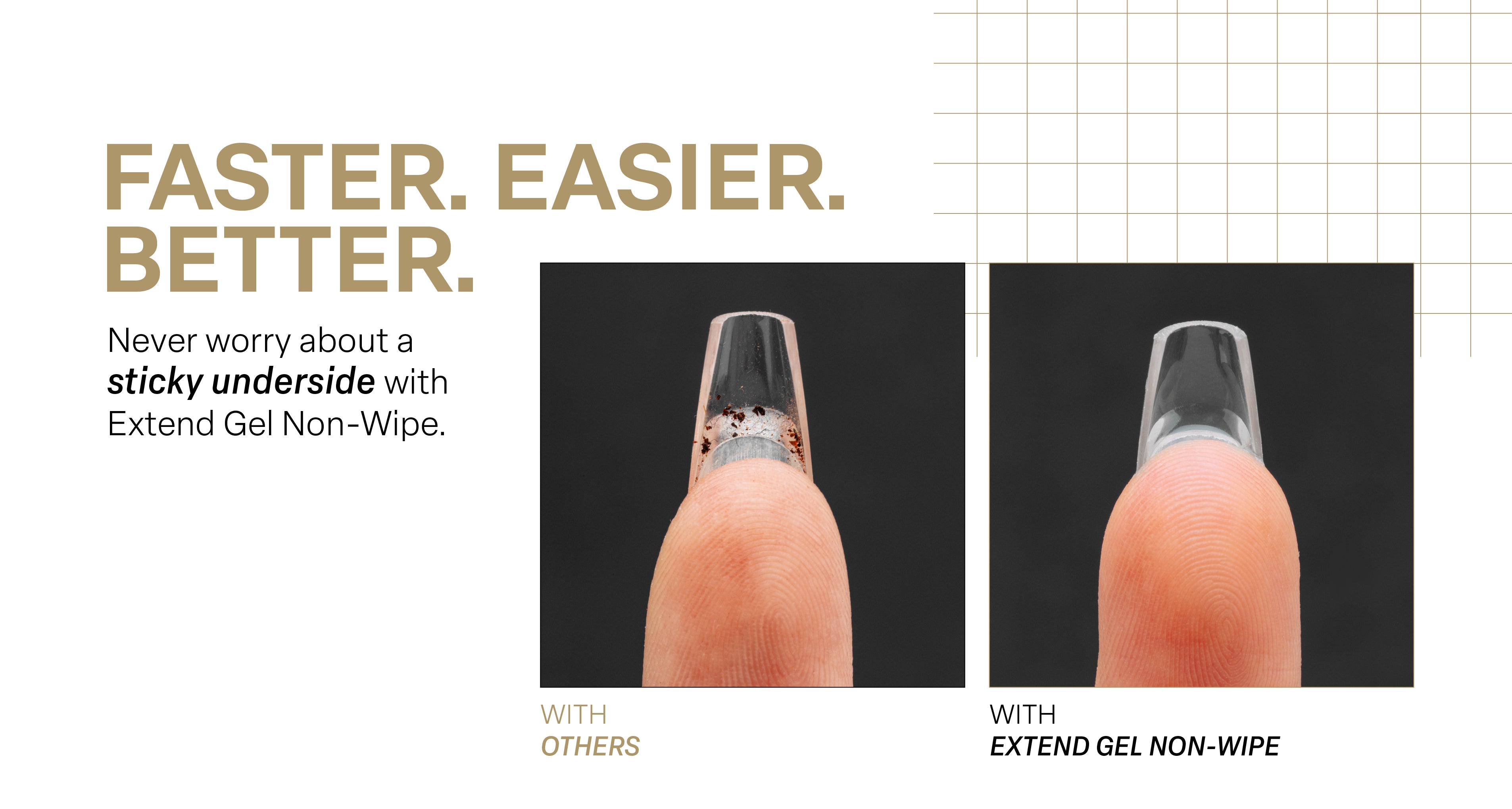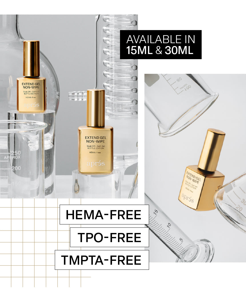 The Next Evolution of Gel-X®. Extend Gel Non-Wipe takes the legendary Aprés hold you know and love and enhances it with a sleek, dust-free finish. This HEMA-Free, TPO-Free, TMPTA-Free formula bonds Gel-X® Tips to natural nails with the perfect balance of strength and flexibility—keeping your sets flawless and comfortable for weeks.
