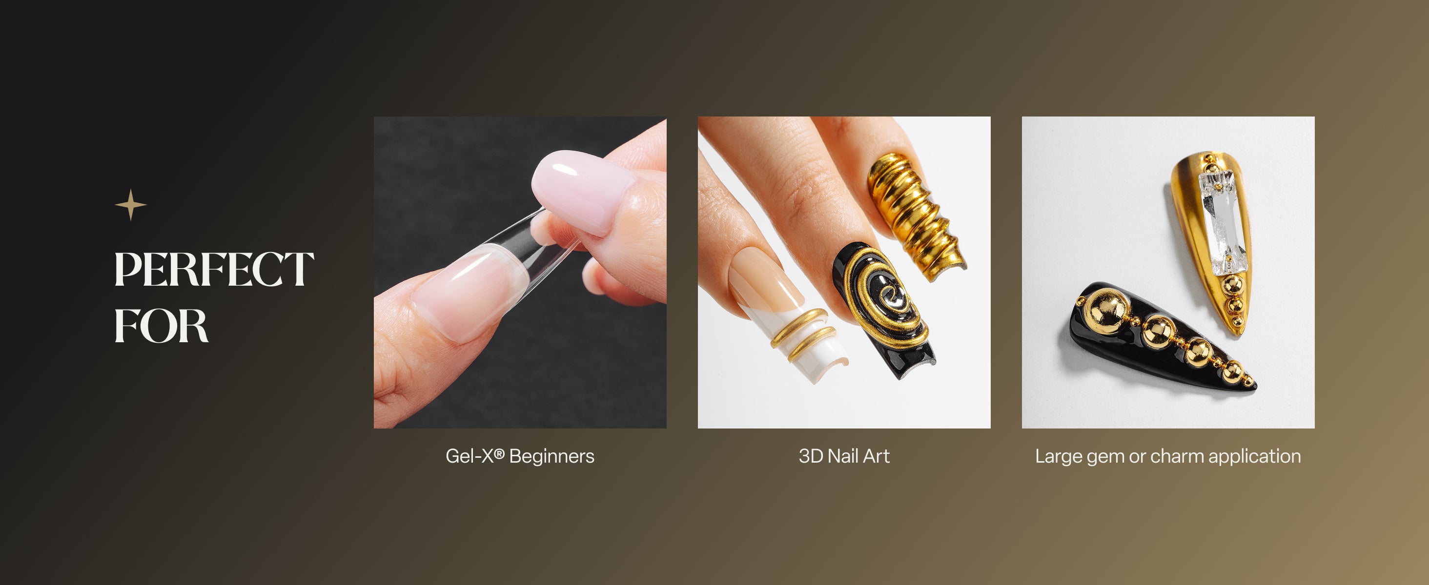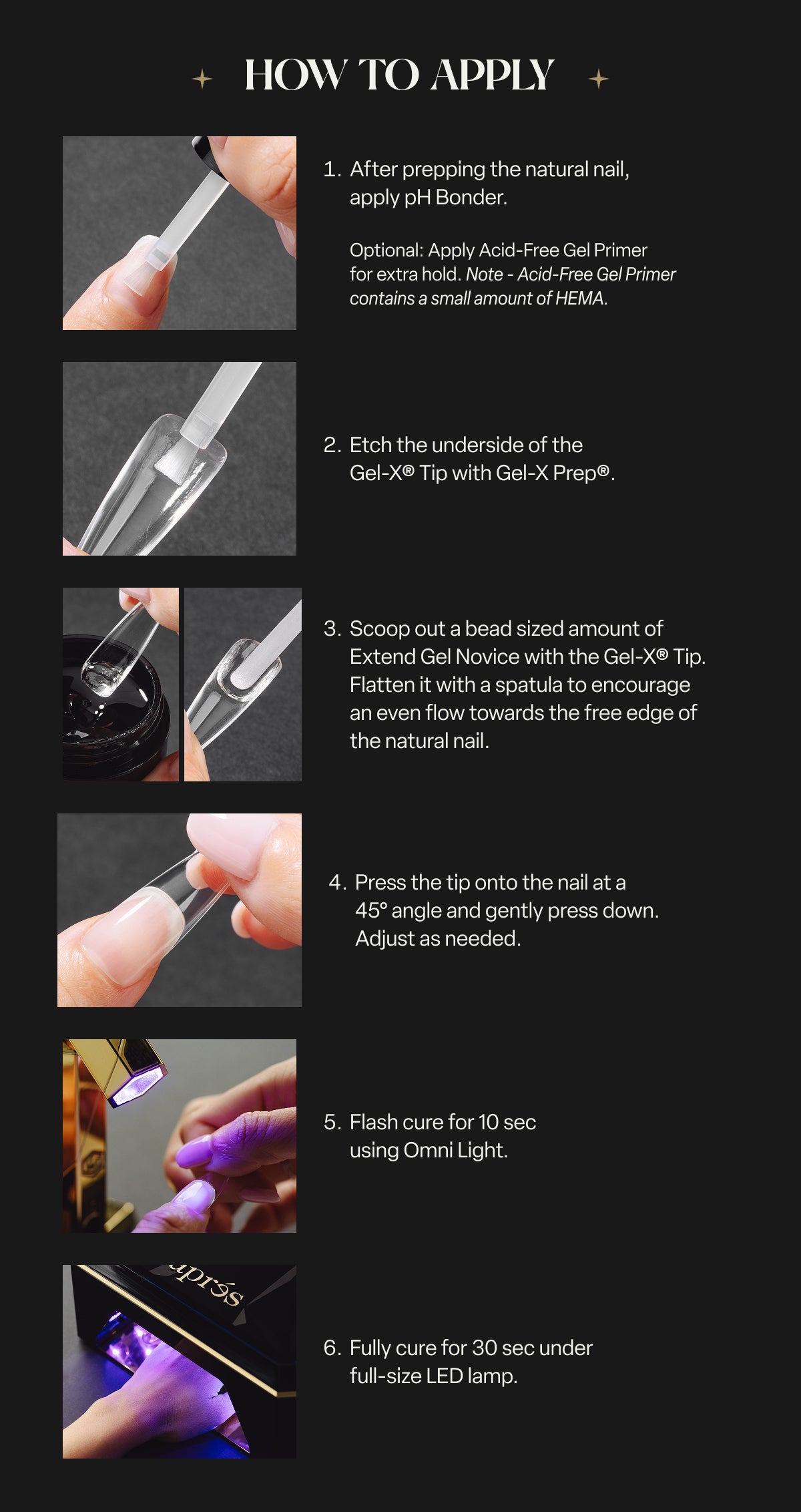 One of the biggest challenges for new Gel-X® users is avoiding gel overflow and keeping the tip secure while maneuvering under a lamp. Extend Gel Novice solves both issues by allowing you to let go of the tip before curing—it stays put without sliding out of place. This gives beginners extra confidence and control during every step of the process.