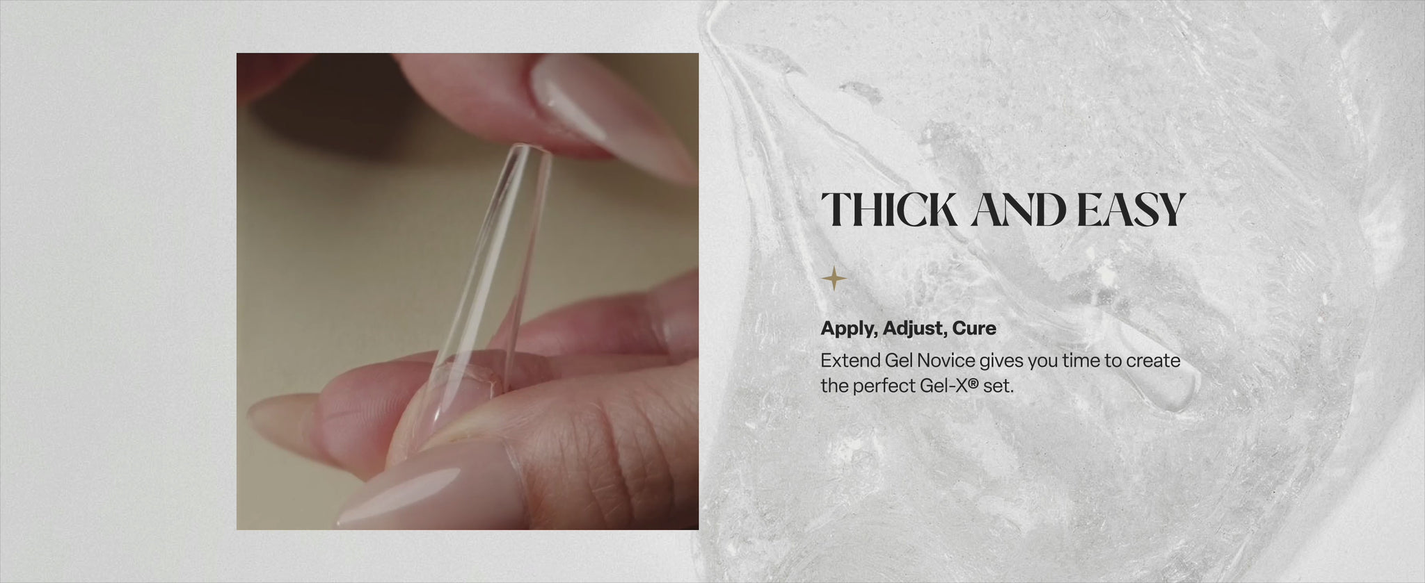 Extend Gel Novice features a thick, putty-like consistency that gently holds the Gel-X® Tip in place. This added stability gives new users more time to:
