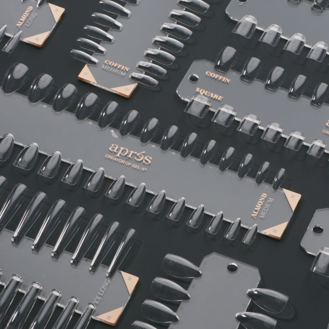 No more tedious fittings! Get the complete collection of Swatches with every Gel-X Tip® length, shape, and style. Swatches make it easy to find the perfect Gel-X® Tip for your client, streamlining the nail application process with ease and precision.