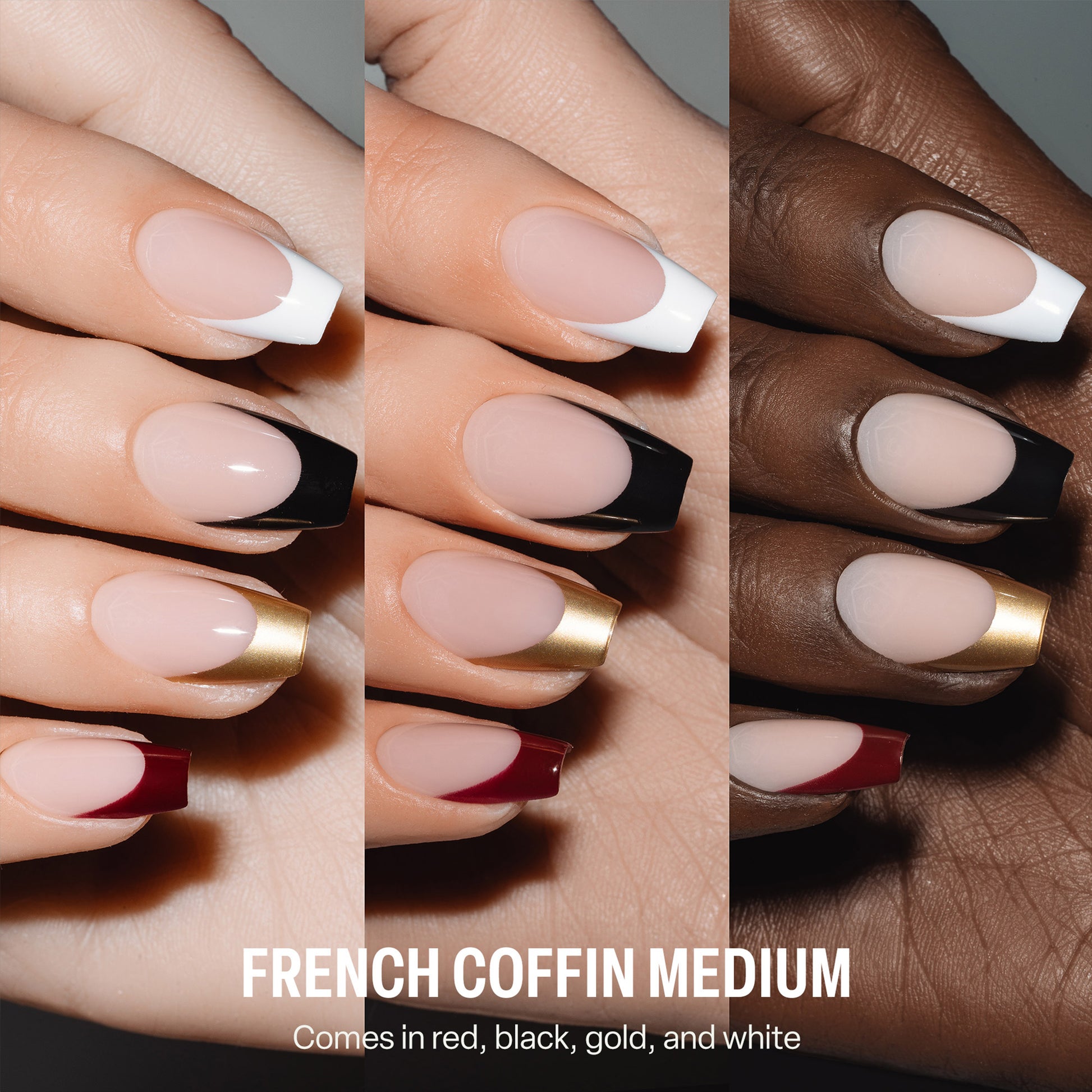 • French tips in red, black, gold, and white