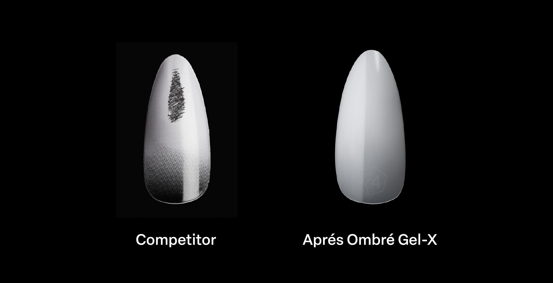 Unlike competitor tips, Ombré Gel-X has its ombré effect INSIDE the Gel-X Tip. This creates a scratch-resistant, chip-resistant Ombré Gel-X Tip. And unlike competitors who paint or print on the effect, leaving visible dot marks, Ombré Gel-X offers a seamless natural gradient with its innovative design.