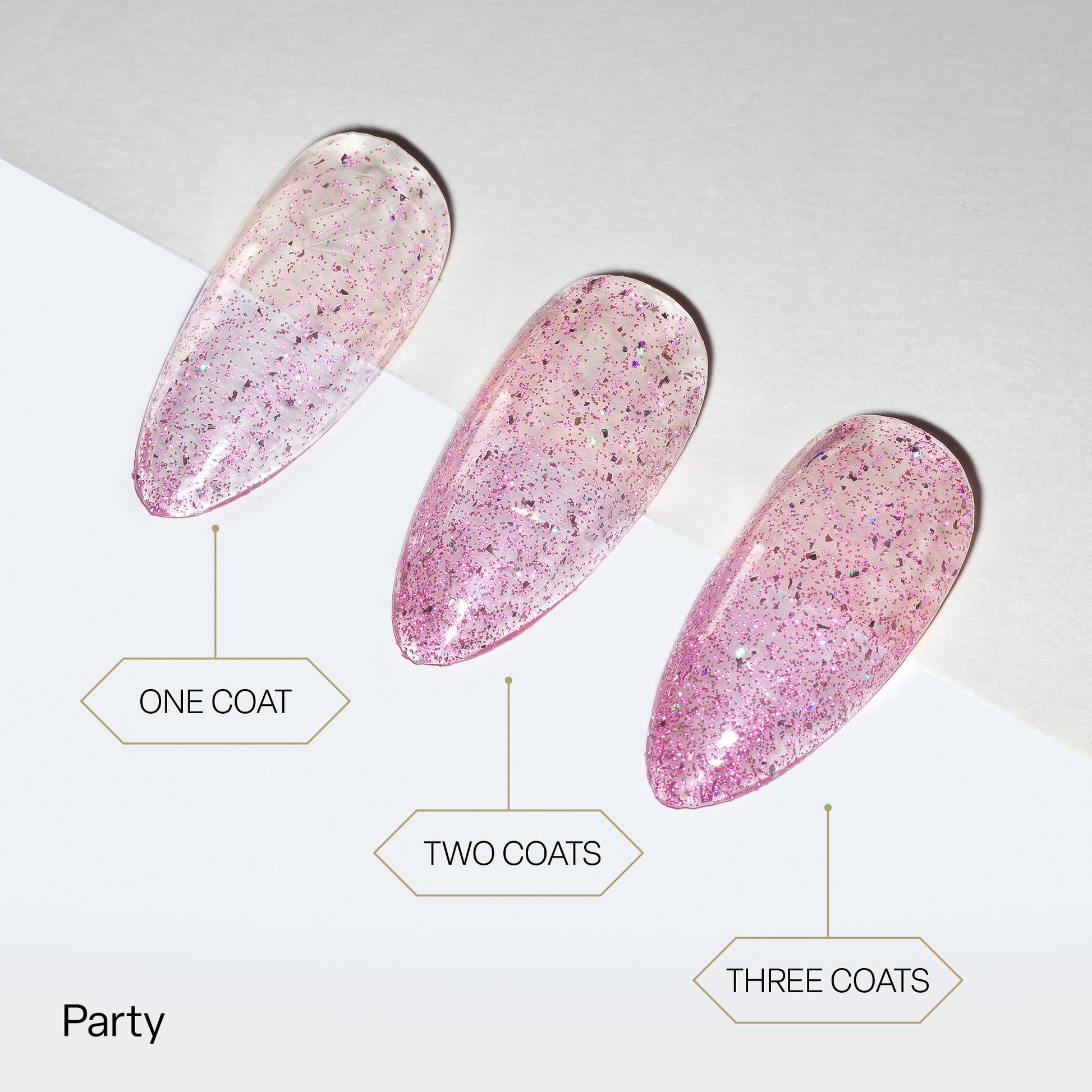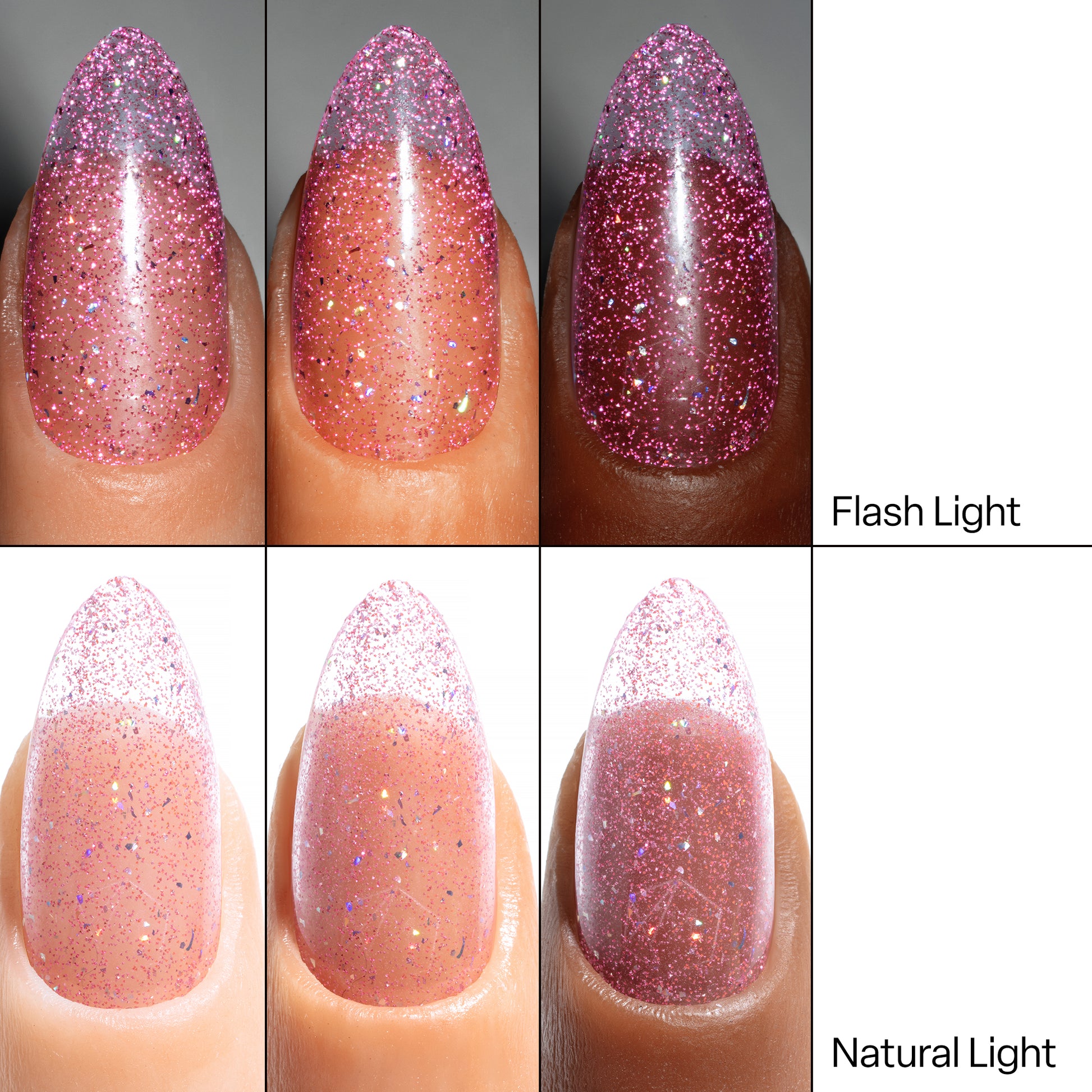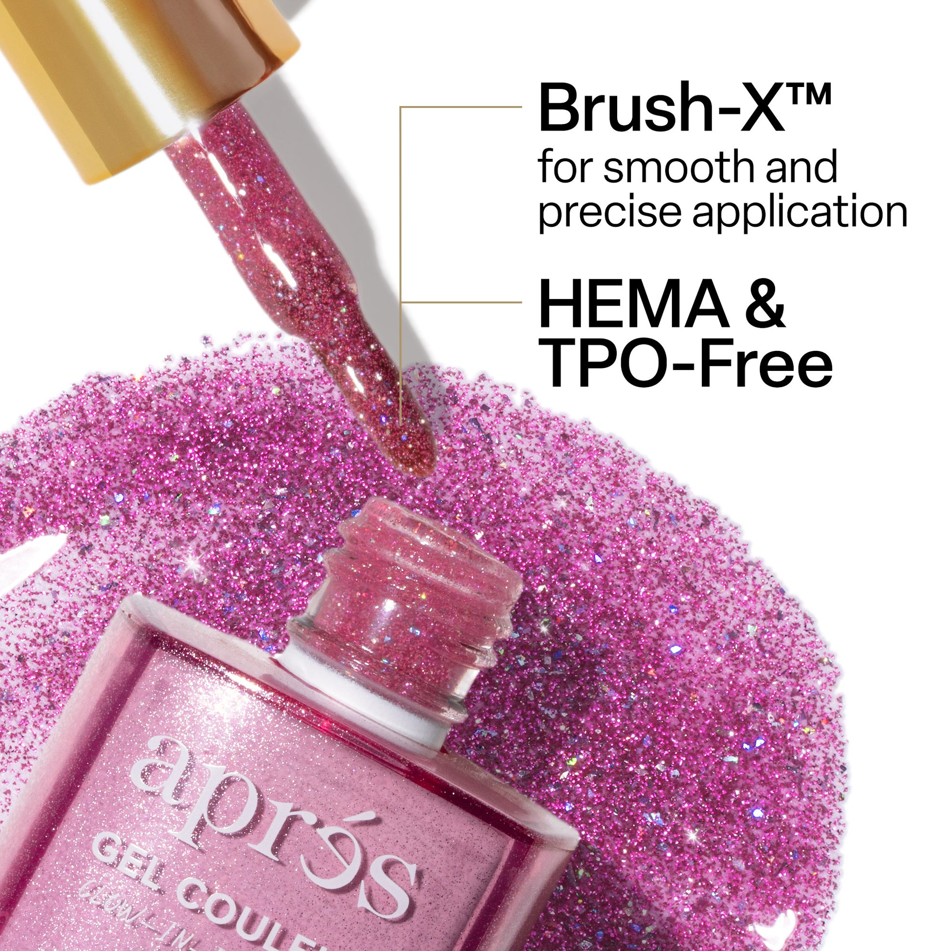 - Apply a layer of ultra reflective Kuromi™ Flash Glitter Gel Couleur and cure in an LED light for 30s. Finish with Aprés Non-Wipe Top Gelcoat and you’re ready to shine bright all day with your besties by your side.
