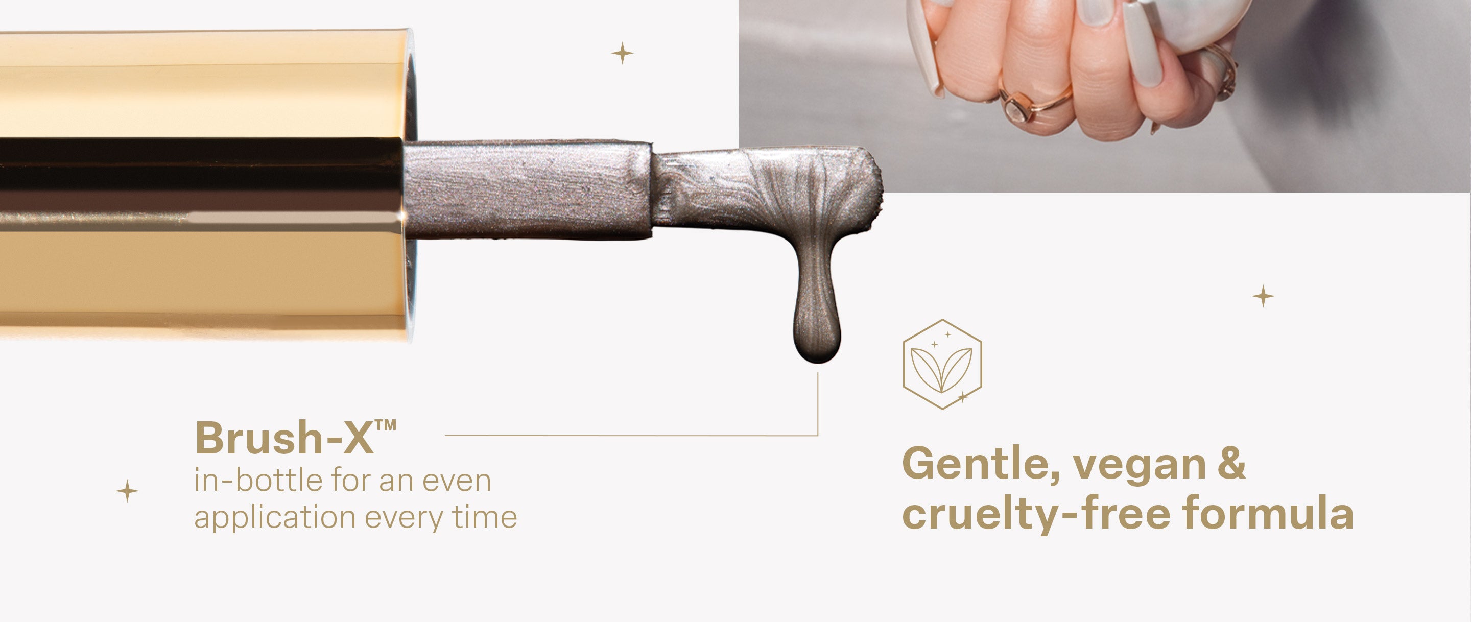 Plus, each shade comes with our game-changing Brush-X™ in-bottle. Made of dense PBT fibers and inspired by Japanese art brushes, Brush-X™ makes it easier for you to achieve a precise, even application every time.
