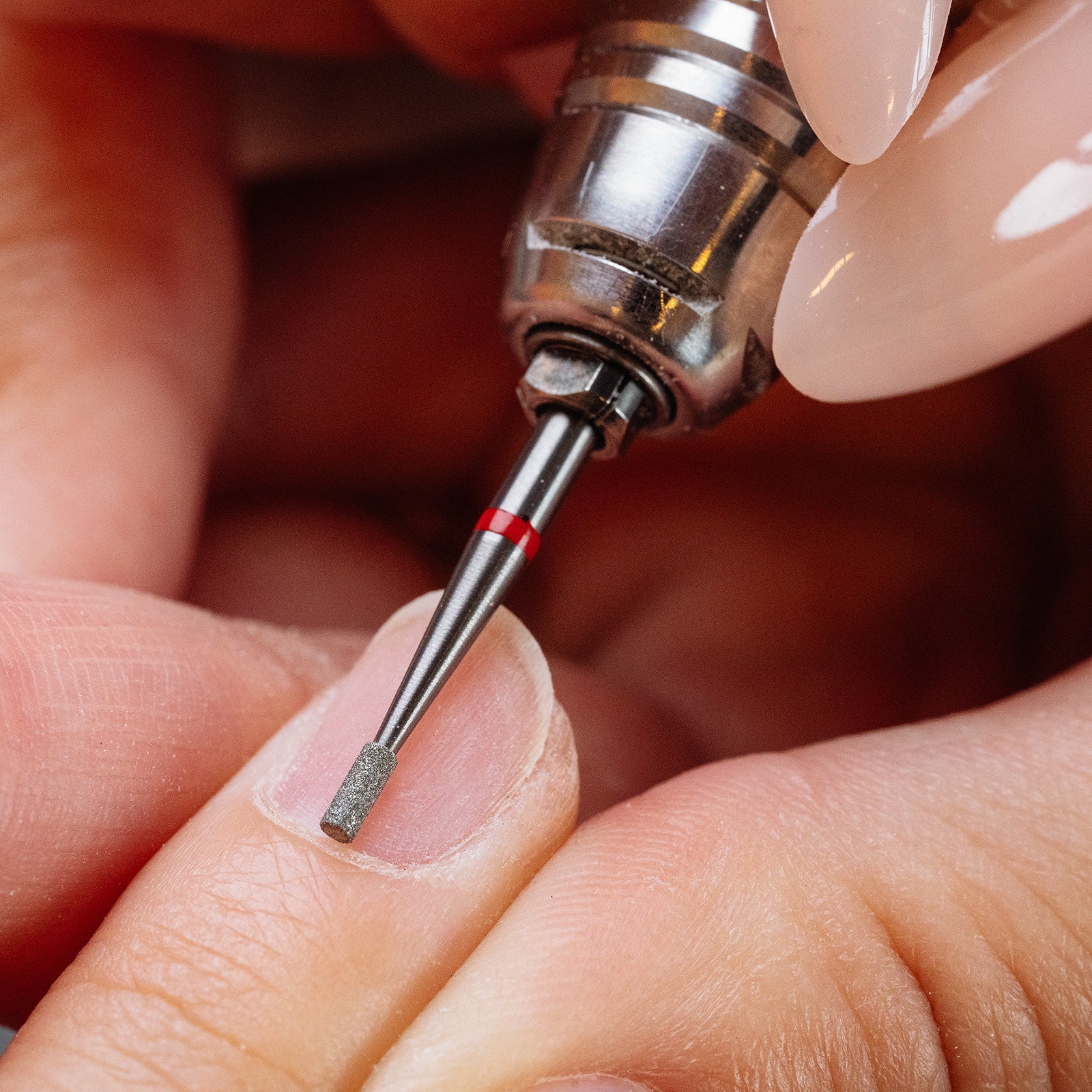 The Aprés Barrel Shape Bit is your go-to tool for fast, efficient prep. With its diamond-plated, flat-topped barrel design, this bit offers maximum surface contact, making it ideal for pushing back the eponychium, lifting and removing cuticle, and smoothing calluses or thickened nail areas. Its precision diamond grit delivers consistent results while remaining gentle enough for detailed prep. Best used at or below 15,000 RPM (depending on skill and technique), this bit is a staple for achieving clean, professional-looking nails before any enhancement service.