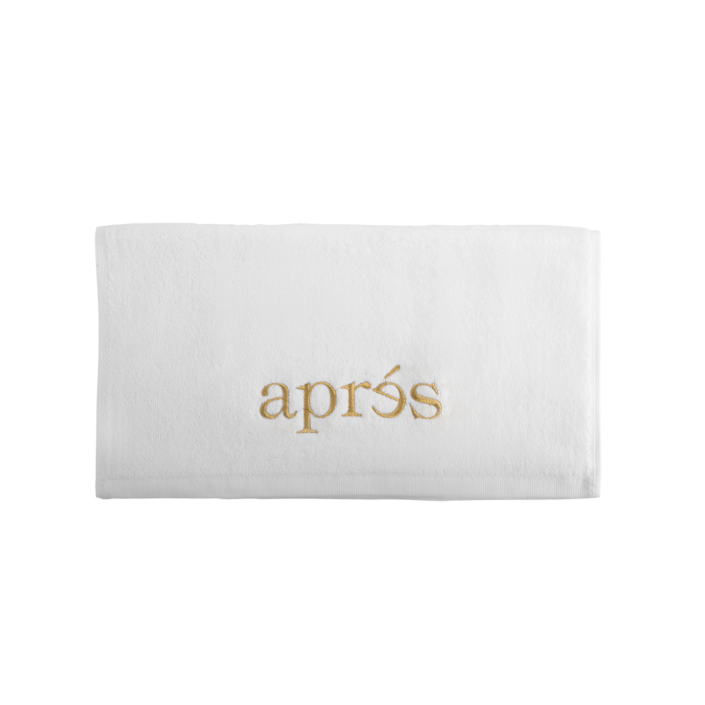 Aprés hand towel brings style and comfort into your everyday salon routine. This hand towel is made from 100% premium cotton and is large enough to fit any standard workstation. Use Aprés hand towel to keep your workstation free from dust particles, cuticle trimmings, and other impurities. This soft cotton towel is available in pure white with an embroidered black or gold Aprés logo.
