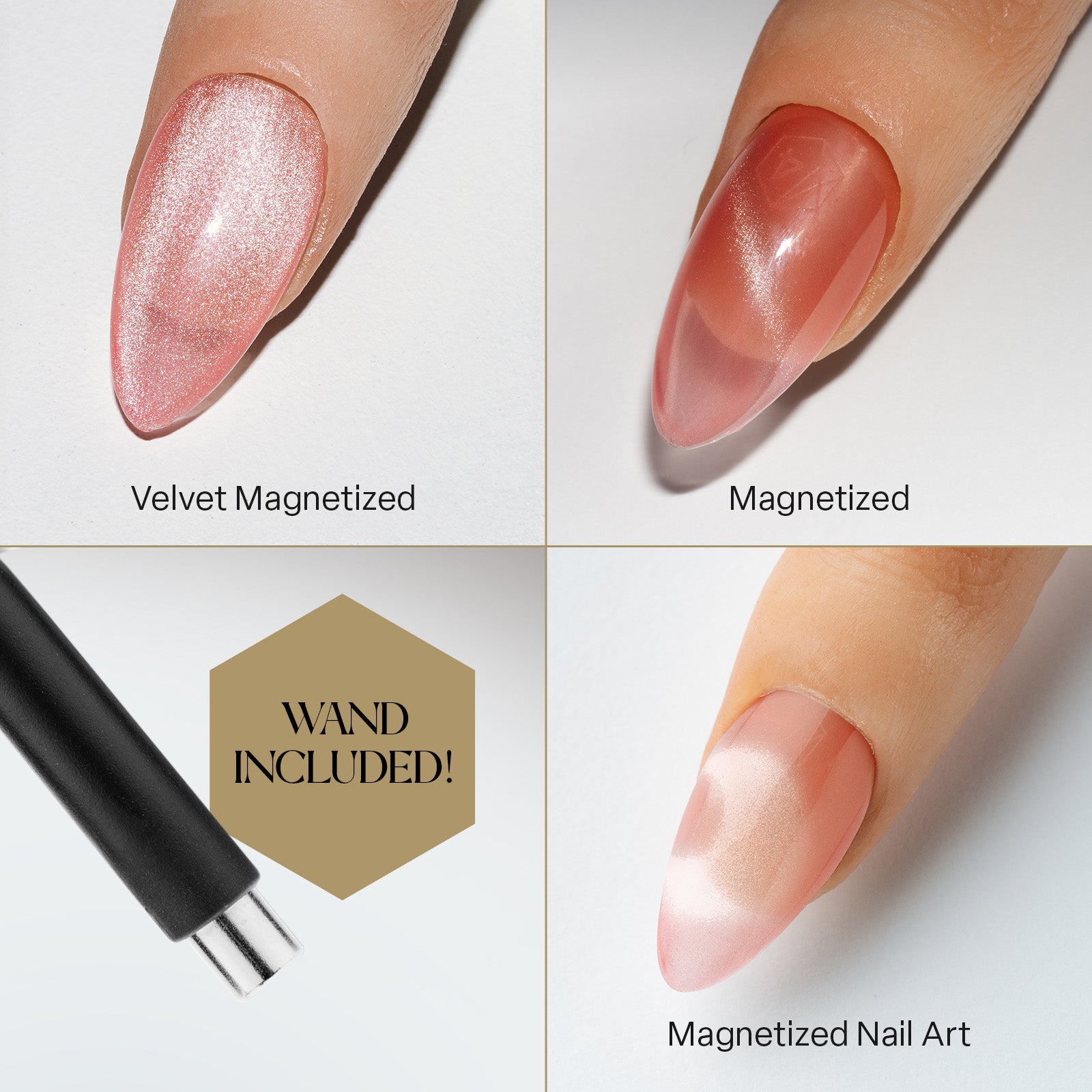 10 Velvet Cat Eye Shades: Every Velvet Cat Eye shade, from an icy bluish white to a luxuriously rich green, leaves a regal and glowing velveteen finish with super-fine magnetic particles suspended in a sheer color gel base to create a completely custom, one-of-a-kind look. Includes Magnet Wand.