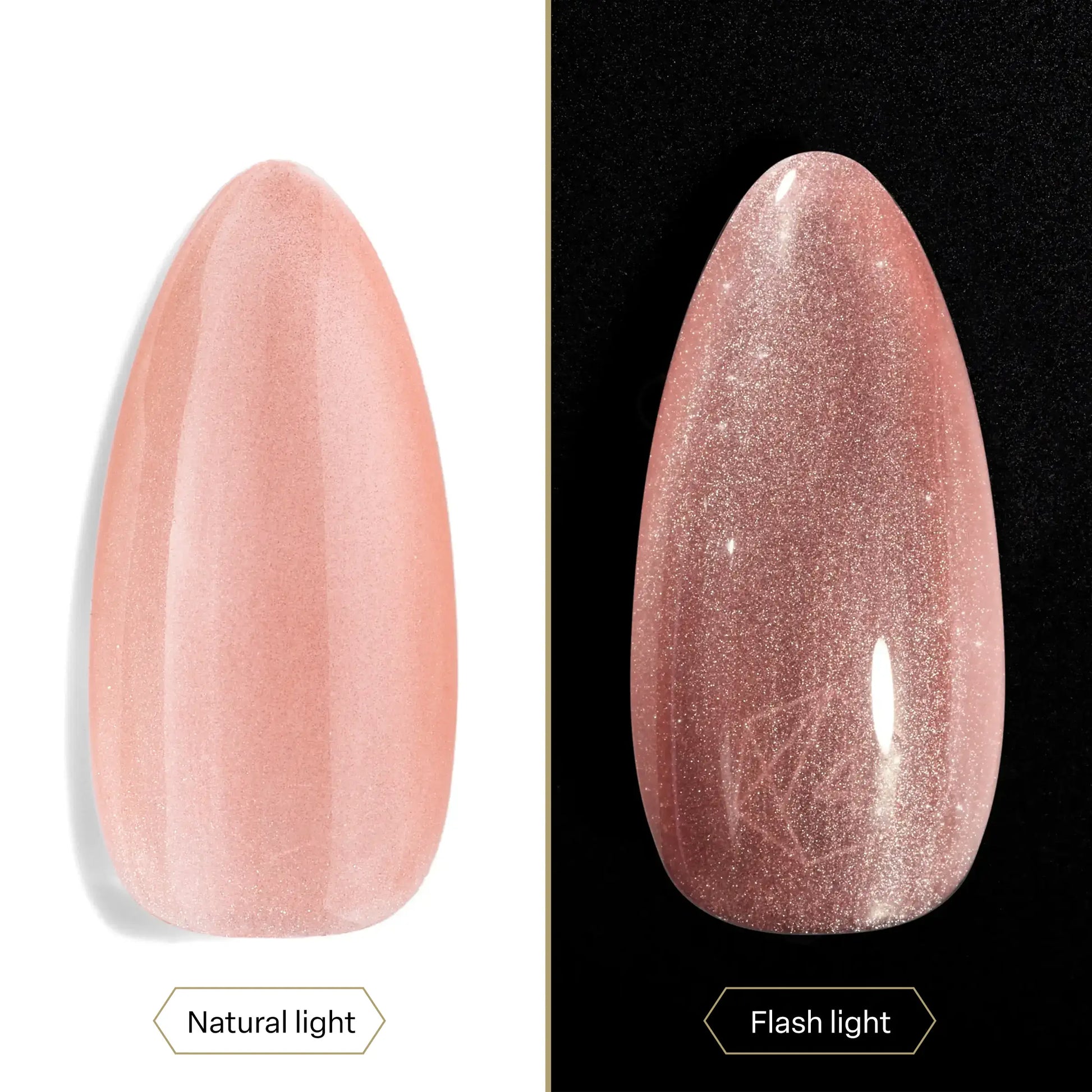 Astral Gel Couleur is a collection of 40 shades in 4 light-refracting, otherworldly finishes—Flash Glitter, Pearlescent, Velvet, and Shimmer Cat Eye. These streak-free, self-leveling formulas leave a unique energetic signature on the nail, empowering you to create looks that resonate on a spiritual level.